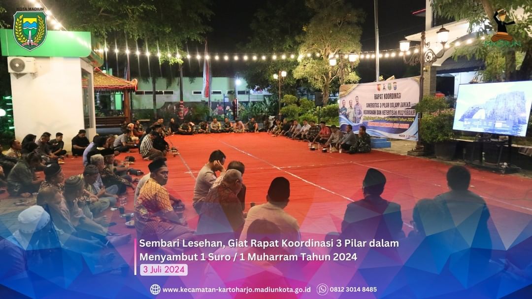 Madiun – Sambil Duduk Lesehan, Giat Rapat Koordinasi Sinergitas 3 Pilar dalam menyambut 1 Suro / 1 Muharram Tahun 2024.…